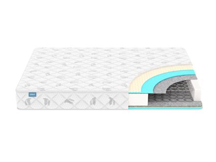 Центром модели служит зависимый пружинный блок Боннель. Все спирали внутри конструкции скреплены особой сцепкой. Это сделано для того, чтобы детали минимально соприкасались друг с другом и не тёрлись о соседние элементы. Благодаря такой конструкции скрип в матрасе максимально нивелируется. Производитель дополнительно изолировал пружинный блок термовойлоком, чтобы матрас прослужил ещё дольше.