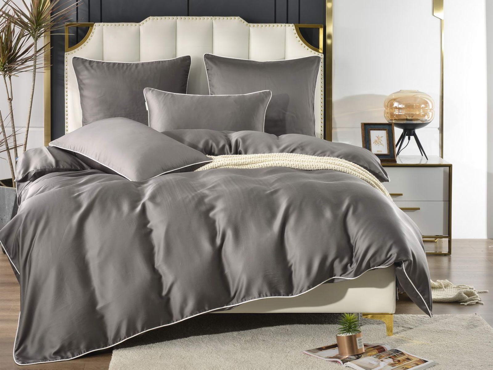Однотонное постельное белье Андре – это огромная палитра разнообразных цветов. Представьте себе, целых 23 оттенка: от пастельных до ярких актуальных цветов. Комплект постельного белья декорирован контрастным кантом на пододеяльнике и наволочках, застегивается на молнию.