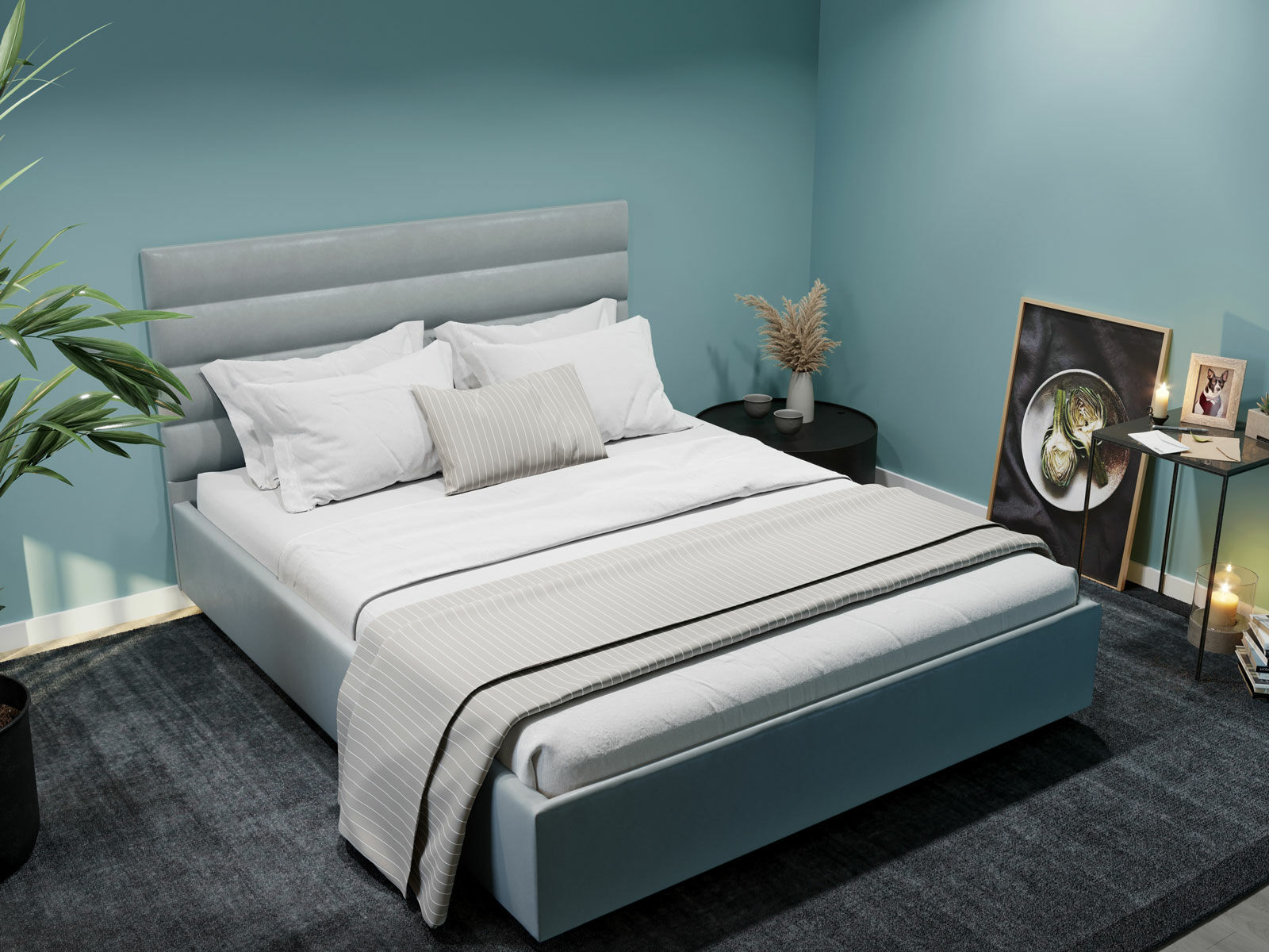 Кровать Левита станет отличным выбором для современных интерьеров, привнося уют и гармонию в любое помещение. Горизонтальная стёжка украшает мягкое изголовье кровати, придавая объем и создавая дополнительный комфорт.