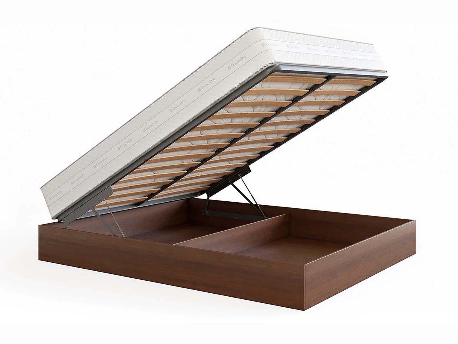 Кровать Куб представляет собой металлическое основание с ламелями из березового шпона и ящик для белья, которые соединены специальным механизмом подъема, который рассчитан под вес матраса. Стандартно предусмотрено основание Dream. Требуется сборка.