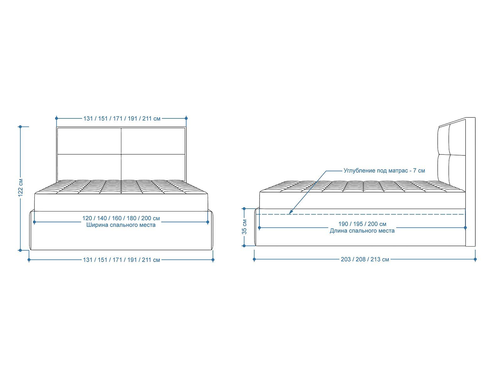 Мягкая кровать с обивкой из велюра.