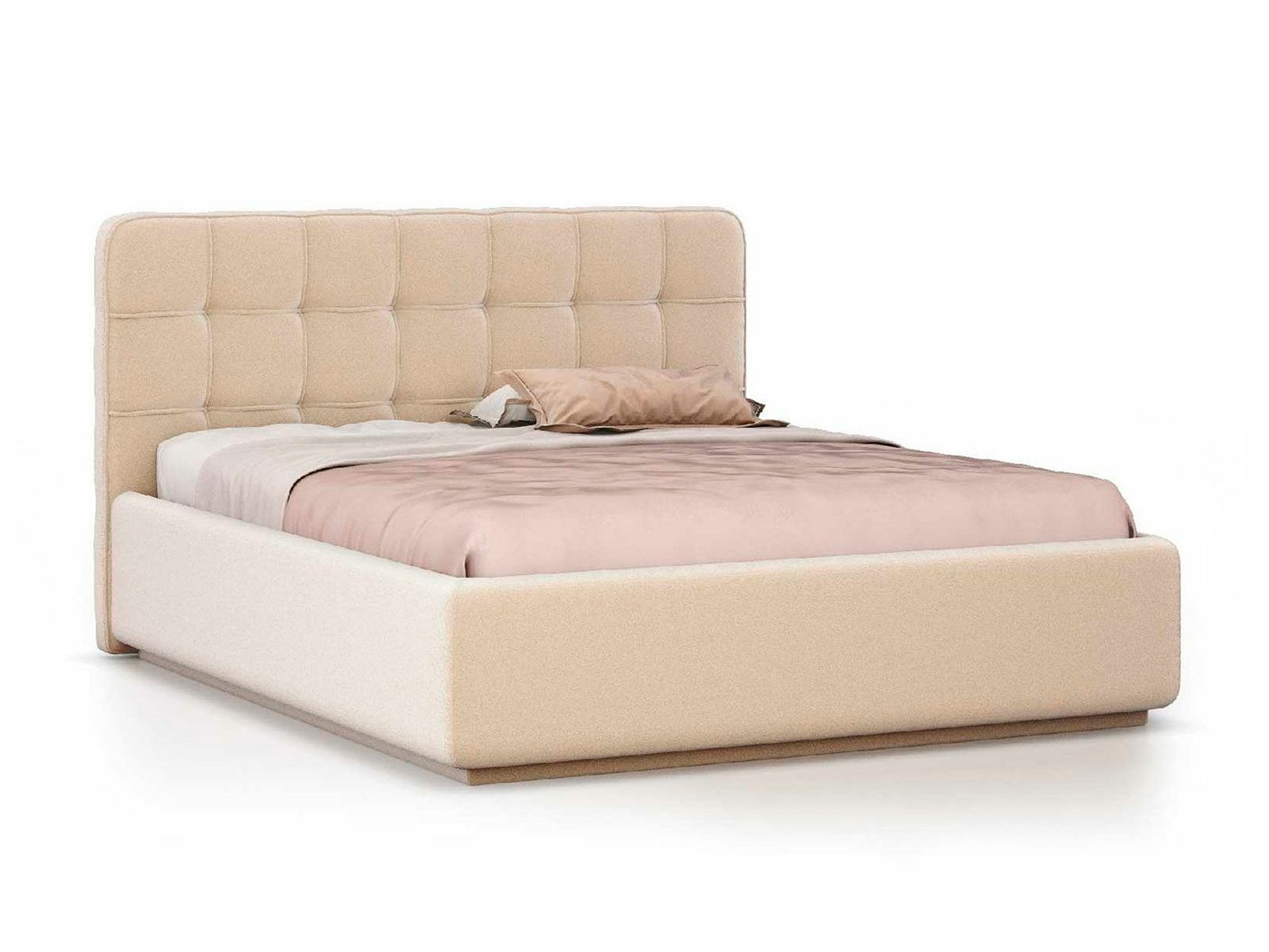Кровать укомплектована IQ с подъемным механизмом и ящиком для белья без дна (дополнительная платная опция - дно к ящику IQ из HDF (ХДФ). Каркас кровати на цоколе, декоративный чехол на цоколе съёмный. Глубина ящика для белья - 30 см, без ограничения нагрузки на ящик.