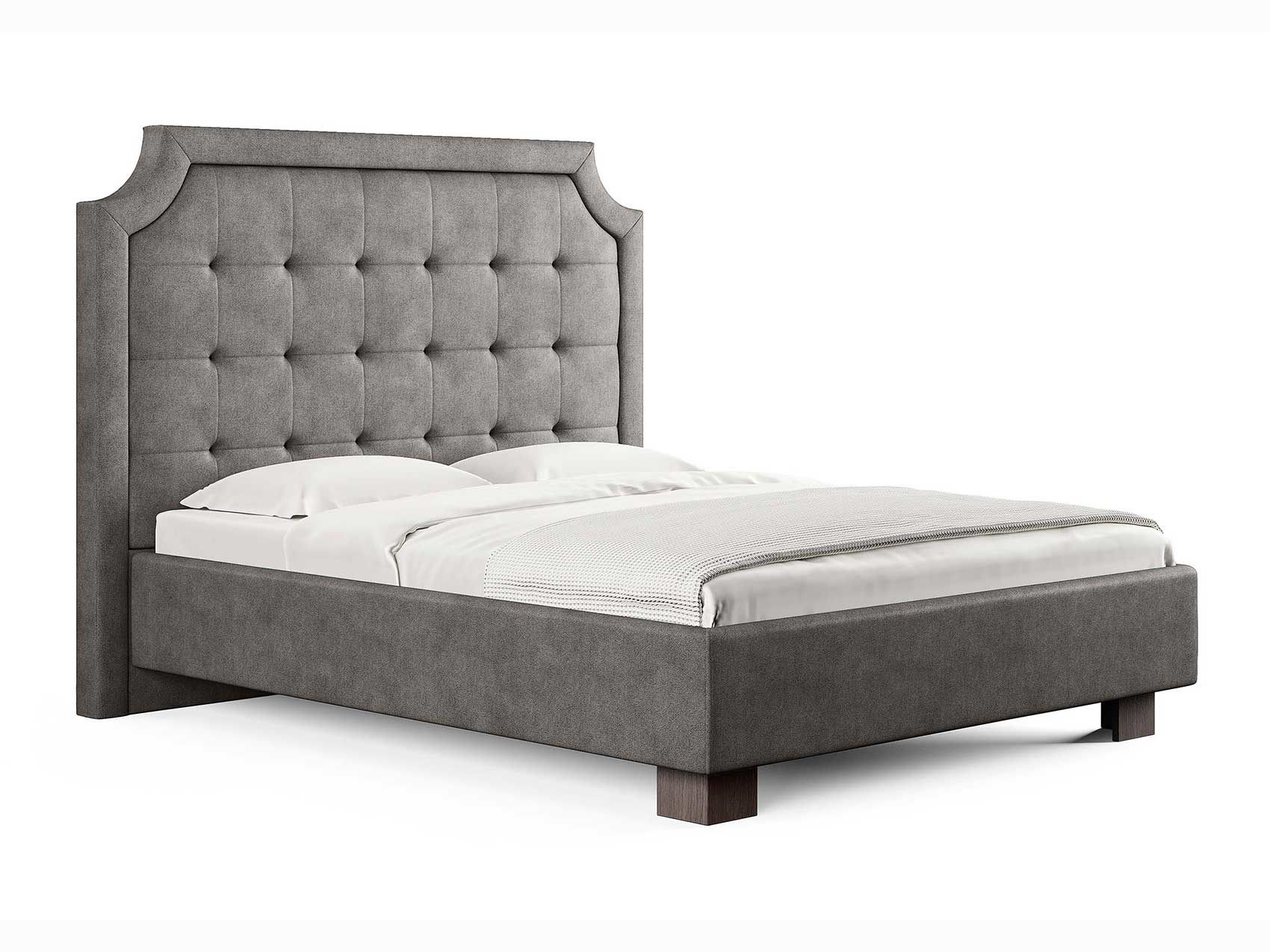 Кровать прекрасно впишется в интерьер от классики до современного стиля и cтанет отличным решением для просторной светлой спальни. Высокая спинка с мягкими утяжками и массивной рамкой выглядит эффектно. Задняя часть спинки кровати выполнена в основной ткани, благодаря этому ее можно установить в центре комнаты. Увеличенная прочность кровати достигается за счет металлического каркаса по периметру. Массивные ножки, выполнены из бука цвета венге. Расстояние от пола до царг способствует легкой уборке под кроватью, в том числе роботом – пылесосом. При желании возможно установить подъемный механизм с бельевым коробом либо трансформируемое основание Aquarius.