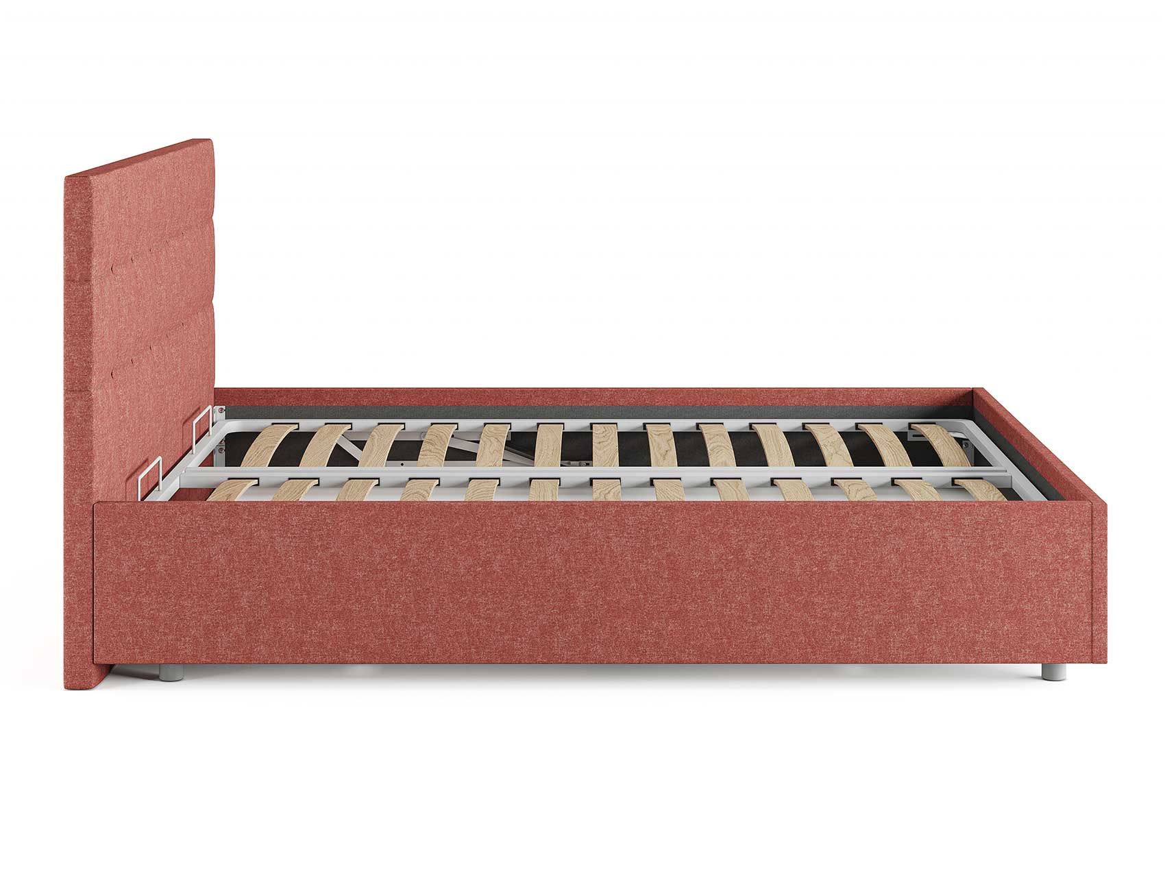 Кровать комплектуется металлическим основанием (без опор), которое имеет 13 рядов встроенных березовых ламелий на каждое спальное место, обеспечивая равномерное распределение нагрузки.
