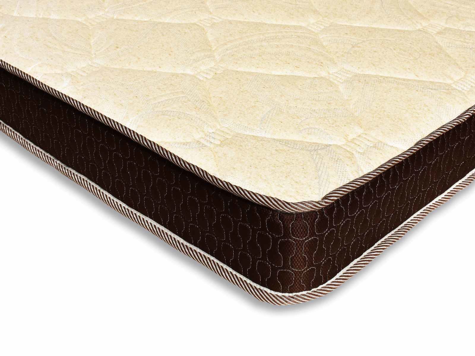 Чехол матраса выполнен из двух видов ткани различных оттенков. Боковина шьётся из тёмной мебельной рогожки, а спальные поверхности из светлого трикотажа с добавлением льна в состав. Поскольку лён – полностью натуральное волокно, то это позволяет материалу хорошо вентилироваться и впитывать влагу. Изысканный рисунок и стильный внешний вид делают матрас оригинальным дополнением любого интерьера.