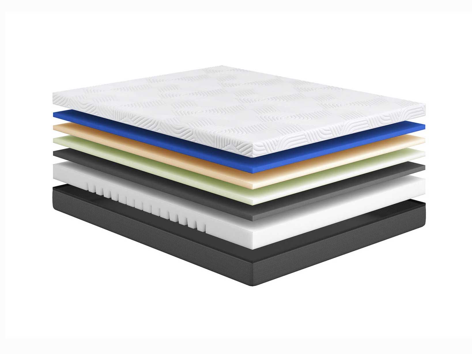 Матрас состоит из пяти различных видов пен. Они наделяют спальную принадлежность уникальными характеристиками.