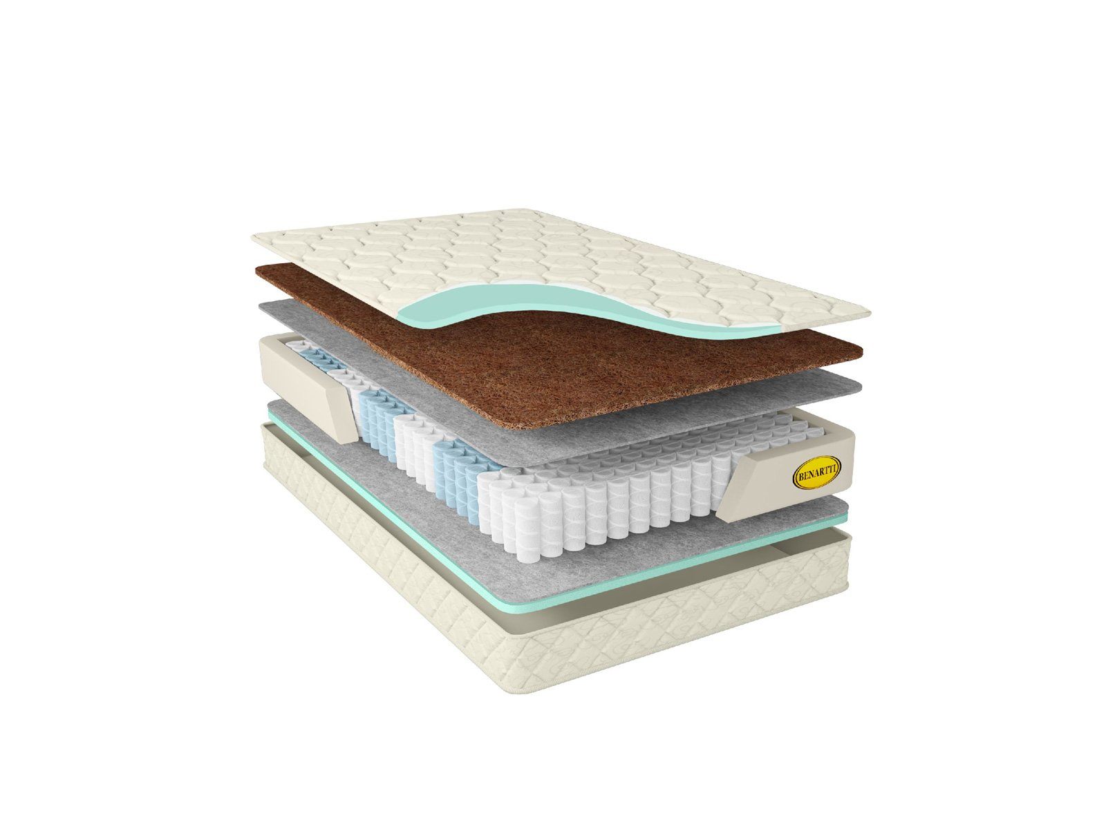 Спальная поверхность представлена кокосовым наполнителем в толщине 1 см. Койра отличается приятной жёсткостью, но главное её качество – это способность к ортопедической поддержке. Именно поэтому кокос предпочитают любители достаточно твёрдых спальных мест, заботящихся о здоровье спины и позвоночника.