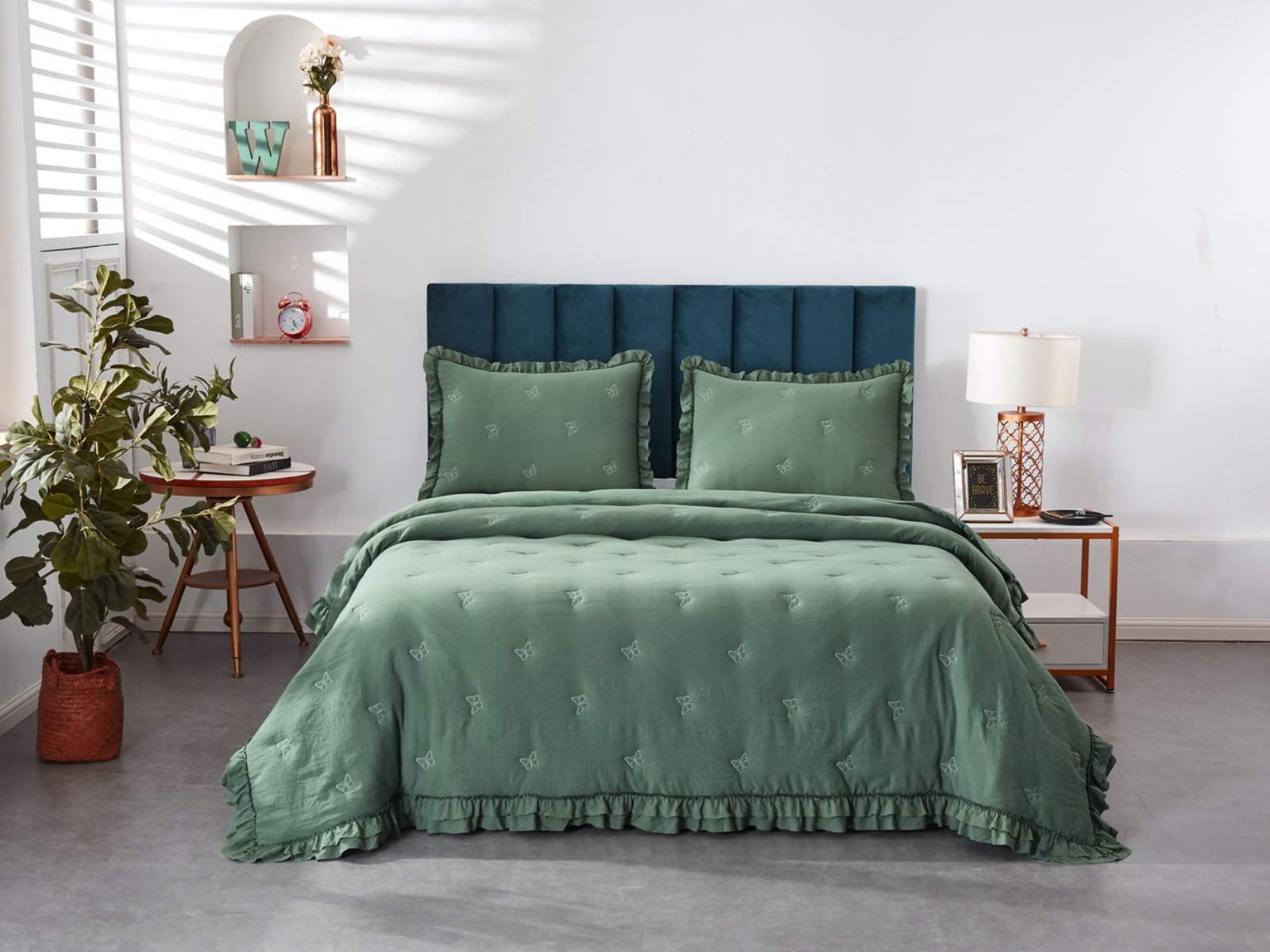 Изделие представлено в пяти цветах: белый, малахит, бежевый, пепельная роза и фиолетовый. Вы сможете подобрать покрывало под любой интерьер.