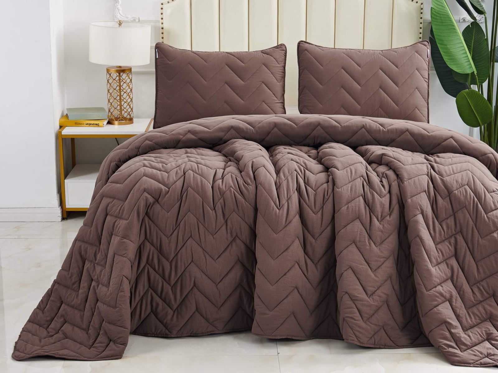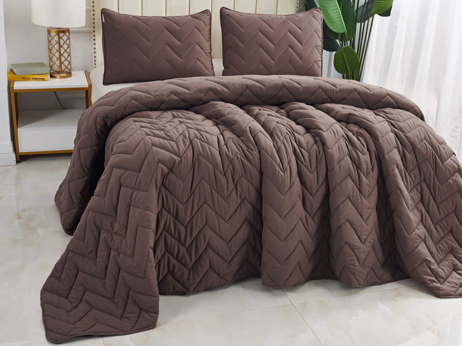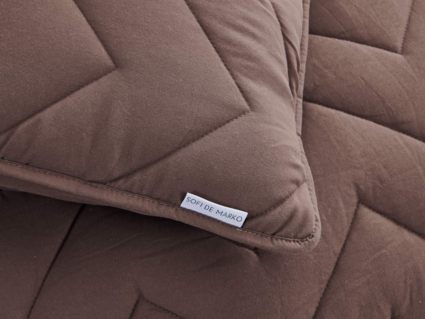 Выбрать покрывало так же важно, как выбрать обои в гостиную или плитку в ванную комнату. В современном мире при огромном разнообразии товаров порой бывает сложно остановиться на конкретном стиле или цвете. Если у вас возникла такая проблема, Sofi De Marko рекомендует приобрести покрывало с наволочками Робби. Эта легкая модель покрывала украшена изящным геометрическим узором. Изделие выполнено в семи оттенках: пепельная роза, крем, чайная роза, беж, мокко, шоколад, серебро. Такая цветовая гамма подойдет большинству современных интерьеров. Кроме того, покрывало возможно использовать в качестве летнего одеяла.
